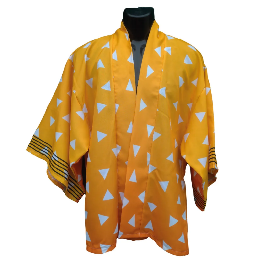 Este kimono no solo es una prenda única y llamativa, sino también una forma de llevar contigo la energía y el coraje de Agatsuma, recordándote que incluso en los momentos de mayor miedo, puedes brillar como un rayo. Perfecto para mostrar tu pasión por Demon Slayer con estilo. Perfecto para tu coleccion!
