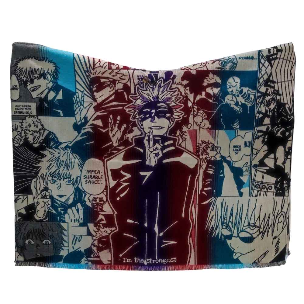 El Poncho Jujutsu Kaisen, confeccionado en olón, es una prenda única que combina comodidad, estilo y homenaje a uno de los animes más emocionantes del momento. Este diseño exclusivo presenta a los personajes más icónicos de la serie, como Satoru Gojo, Yuji Itadori, y otros favoritos, en un collage de escenas de manga que resaltan toda la intensidad y el dinamismo de Jujutsu Kaisen.